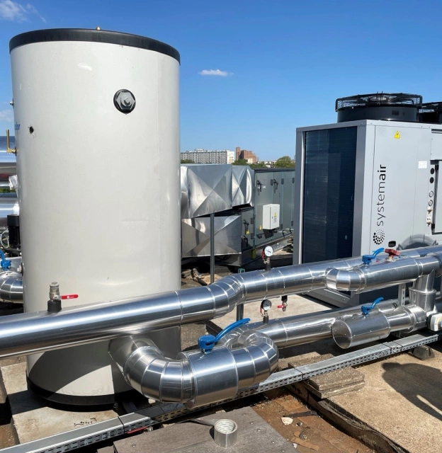 Installation VRV 3 tubes avec 65 unités intérieures de type gainable et d’un système double flux avec batterie thermo dynamique.…