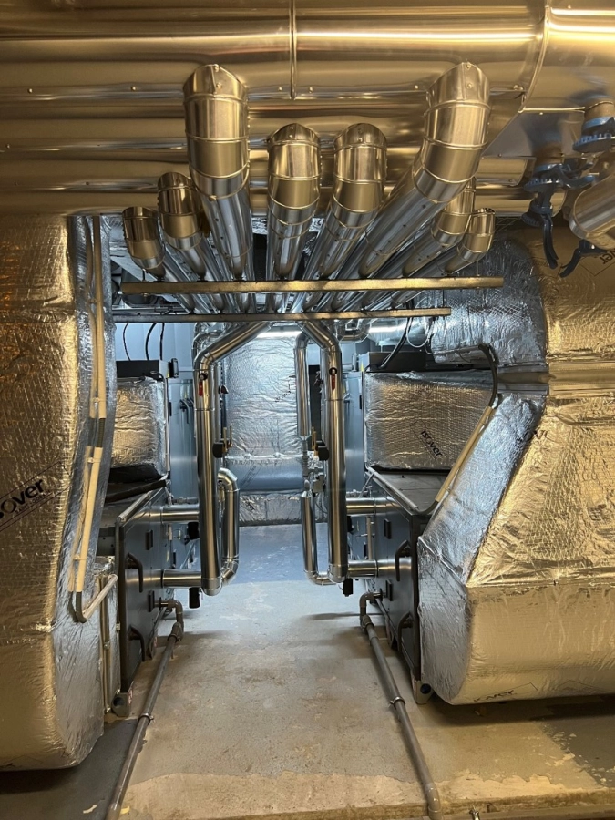 Rénovation CVC en Milieu occupé. Création et remplacement de 8 CTA avec l’ensemble des réseaux aérauliques verticaux.Travaux aéraulique et hydraulique